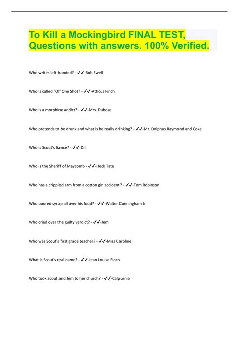 Download To Kill A Mockingbird Final Test Answers Kobo Gutenberg